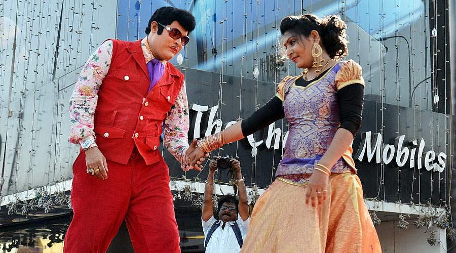 ஸ்ரீபெரும்புதூரில் நடைபெற்ற அதிமுக பிரச்சார கூட்டத்தில் வாக்கு சேகரிக்க எம்.ஜி.ஆர் போல் வேடம் அணிந்து அசத்திய நாடக நடிகர்கள்.