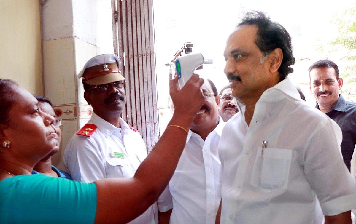 கரோனா வைரஸ் முன்னெச்சரிக்கை நடவடிக்கையாக தலைமைச் செயலகத்தில், திமுக தலைவர் மு.க.ஸ்டாலின், சட்டப்பேரவை உறுப்பினர்கள் உட்பட அனைவருக்கும் தெர்மல் ஸ்கேனர் மூலம் கரோனா பரிசோதனை மேற்கொள்ளப்பட்டது.