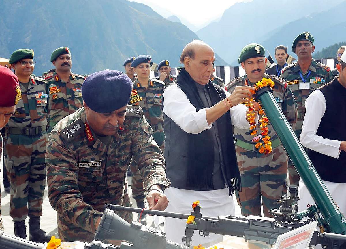ஆலியில் விஜயதசமியை முன்னிட்டு முன்னிட்டு போர் தளவாடங்களுக்கு பாதுகாப்புத் துறை அமைச்சர் ராஜ்நாத் சிங் சந்தனம், குங்குமம் வைத்து 'சாஸ்திர பூஜை' செய்து மகிழ்ந்தார்.