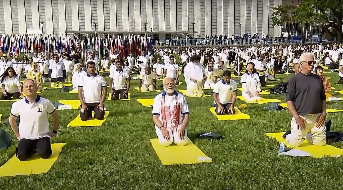 சர்வதேச யோகா தினம் இன்று கொண்டாடப்படும் நிலையில் நியூயார்க்கில் உள்ள ஐநாவின் தலைமையகத்தில் பிரதமர் மோடி தலைமையில் 180 நாடுகளின் பிரதிநிதிகள் பங்கேற்று யோகா செய்து அசத்தினர்.