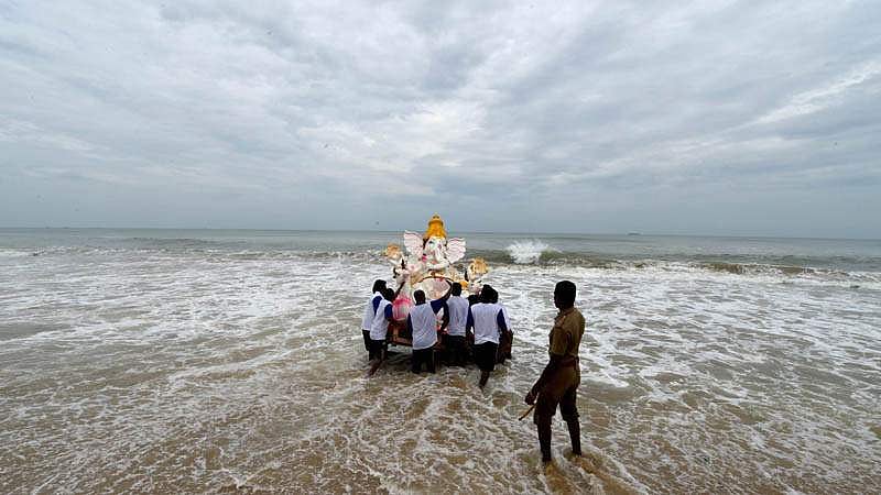 விநாயகர் சதூர்த்தி வெகு விமரிசையாக கொண்டாடப்பட்டுள்ள நிலையில், இன்று முதல் சிலைகளை கரைக்கும் பணி தொடங்கியது. பட்டினம்பாக்கம், காசிமேடு, நீலாங்கரை, எண்ணூர் ஆகிய இடங்களில் சிலைகளை கரைக்க காவல்துறையினர் அனுமதி வழங்கியது. இந்நிலையில் ராட்சத கிரேன் மூலமாக சிலைகள் கரைக்கப்பட்டு வருகின்றன. இதனையொட்டி பாதுகாப்பு பணியில் சென்னை முழுவதும் காவல்துறையினர் ஈடுபட்டுள்ளனர்.