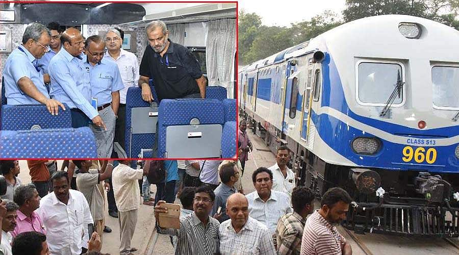 சென்னை ஐ.சி.எஃப். வளாகத்தில் திங்கள்கிழமை நடைபெற்ற நிகழ்ச்சியில், 13 பெட்டிகள் கொண்ட 6 நவீன டீசல் என்ஜின் ரயில்கள் இலங்கைக்கு அனுப்புவதற்காக இந்திய ரயில்வேயின் பொதுத்துறையிடம் ஒப்படைக்கும் நிகழ்ச்சி ஐசிஎஃப் வளாகத்தில் நடைபெற்றது. இந்த ரயிலில் 2 குளிர்சாதன வசதி கொண்ட பெட்டிகளும், 2 உயர்வகுப்பு பெட்டிகளும், என்ஜின்களுடன் கூடிய 2 பெட்டிகளும், 7 இரண்டாம் வகுப்பு பெட்டிகளும் இடம்பெற்றுள்ளன. மொத்தம் 810 பயணிகள் இதில் அமர்ந்து பயணிக்கலாம். ரயிலில் வசதிகளை பார்வையிடும் ஐ.சி.எஃப். பொது மேலாளர் எஸ்.மணி உள்ளிட்ட அதிகாரிகள்.