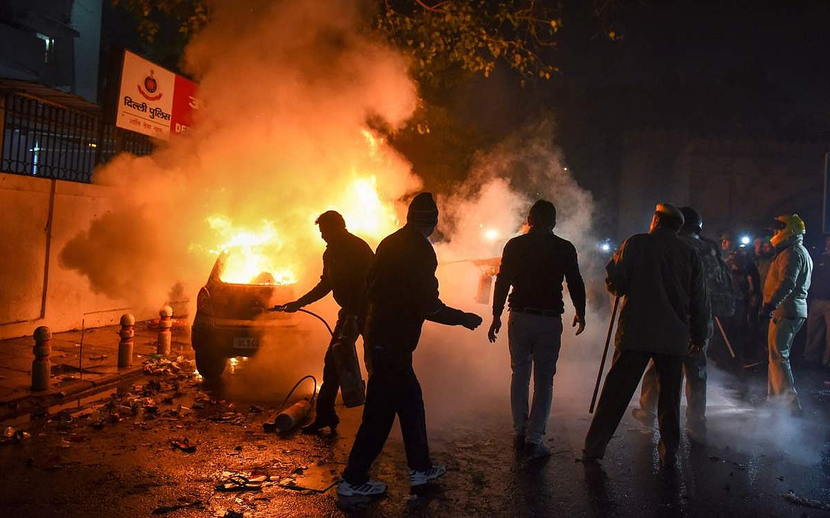 குடியுரிமைத் திருத்தச் சட்டத்திற்கு எதிர்ப்பு தெரிவித்து நாடு முழுவதும் போராட்டம் வலுத்து வருகின்ற நிலையில் பல்வேறு தரப்பினர் போராட்டத்தில் ஈடுபட்டு வருகின்றனர். அப்போது போராட்டக்காரர்கள் தில்லியில் கார் ஒன்றுக்கு திடீரென தீ வைத்தனர். தகவல் அறிந்த பேலீஸார் அங்கு வந்து தண்ணீரைப் பீச்சியடித்தும், ஆா்ப்பாட்டக்காரா்கள் மீது கண்ணீா் புகைக் குண்டுகளை வீசியும் கலைத்தனா்.