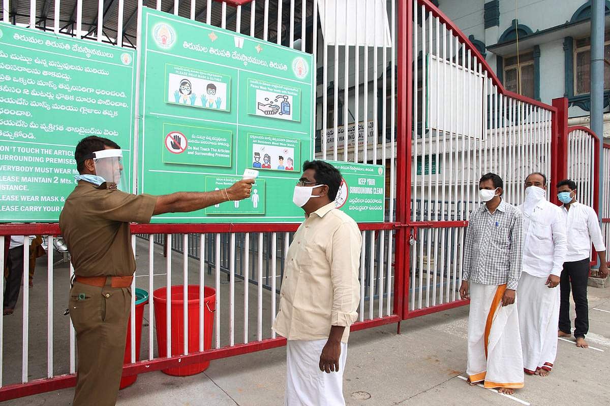 திருமலையில் 79 நாள்களுக்கு பிறகு இன்று தேவஸ்தான ஊழியர்களுடன் ஏழுமலையான் தரிசனம் தொடங்கியது. 79 நாள்களுக்கு பின் கோயிலில் பக்தர்களுக்கு தரிசன அனுமதி கிடைத்ததால் கோயில் முழுவதும் மலர்களாலும், மின் விளக்குகளாலும் அழகுற அலங்கரிக்கப்பட்டது.