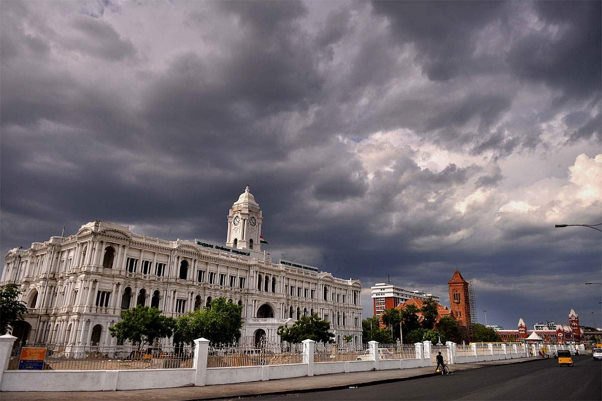 சென்னையில் பகலை இரவாக்கும் வகையில் சூழ்ந்த கருமேகங்கள். இதனால் வெப்ப காற்று தளர்ந்து, குளிர்ந்த காற்று வீசியதால், மக்கள் சற்றே இளைப்பாறினர்.