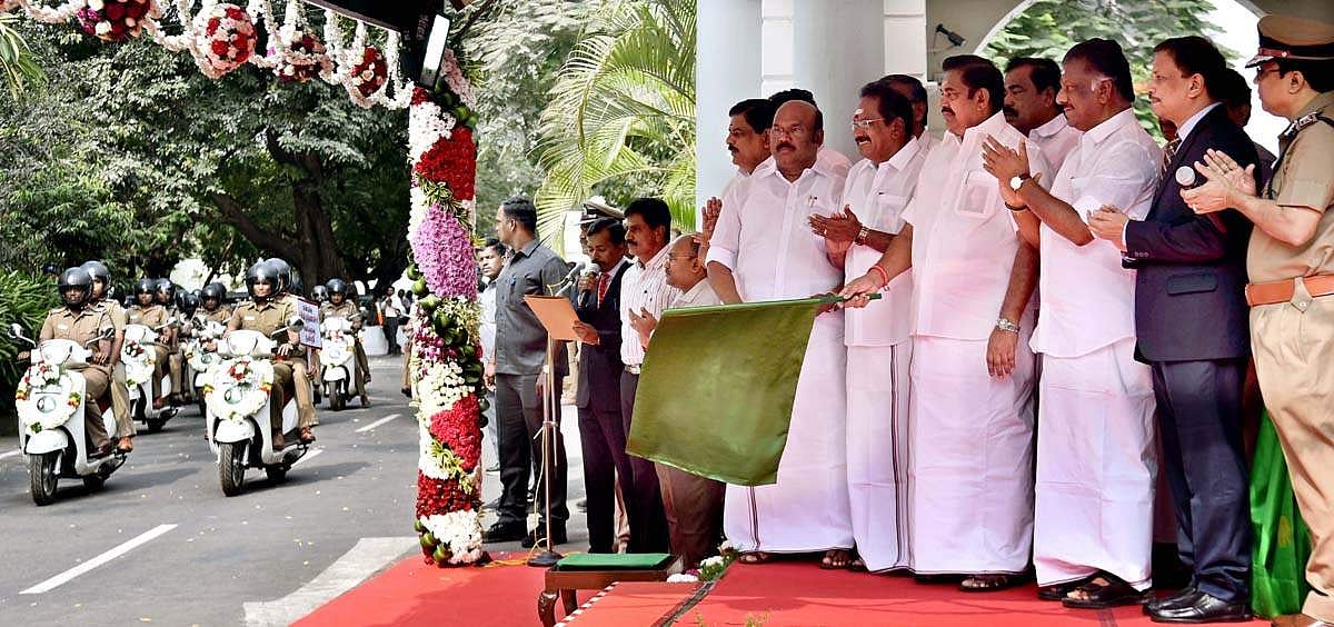 காவல்துறையினரின் பயன்பாட்டிற்காக ரூ.95 கோடி செலவில் 510 ஜீப்கள், 20 பேருந்துகள், 100 சிறிய பேருந்துகள், 50 வேன்கள், 50 லாரிகள், 4 தண்ணீர் டேங்கர் லாரிகள், 1,506 இருசக்கர வாகனங்களை ஒப்படைக்கும் நிகழ்ச்சி இன்று முதல்வர் எடப்பாடி பழனிசாமி தலைமை செயலகத்தில் கொடியசைத்து துவக்கி வைத்தார்.