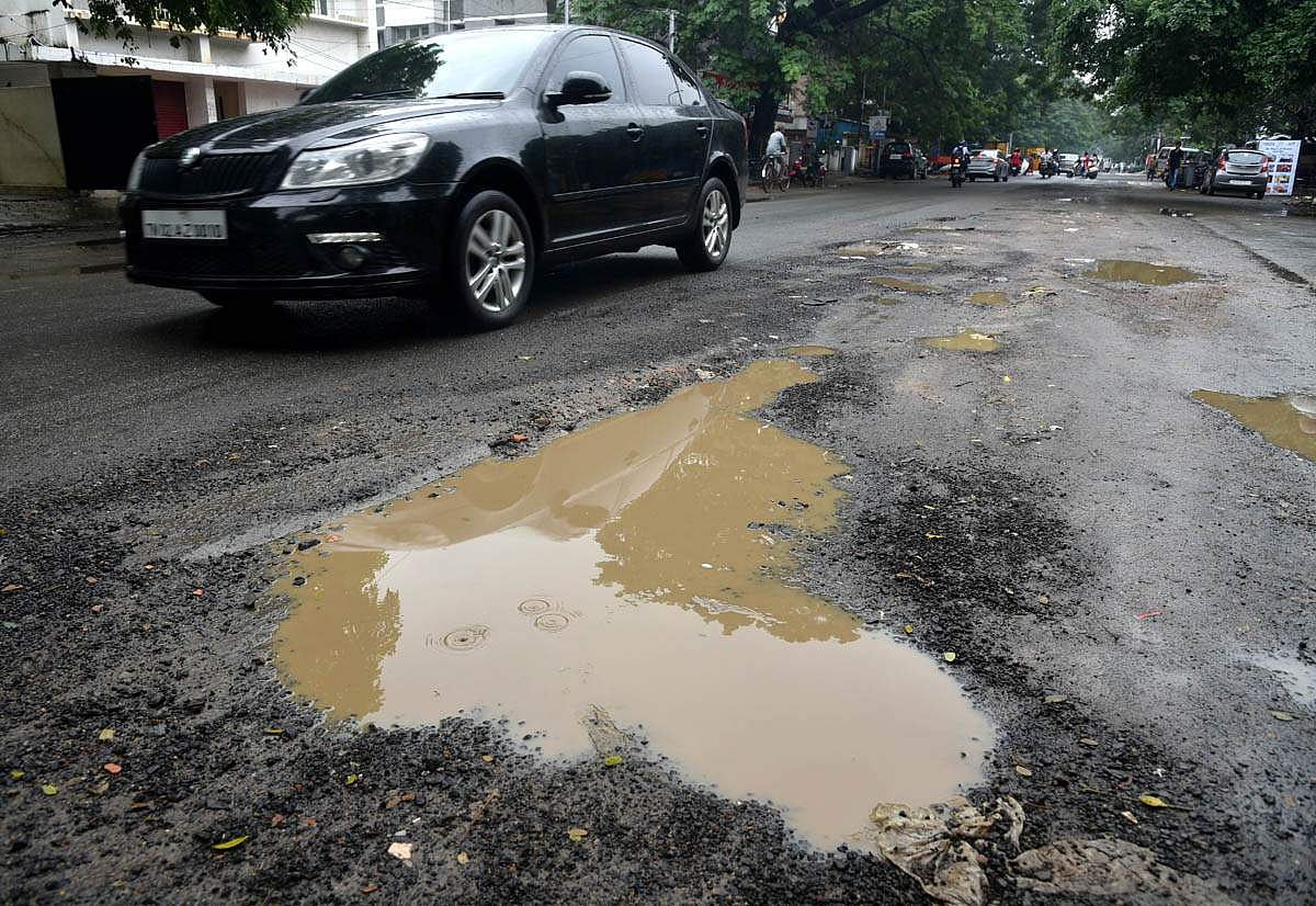 மழையால் குண்டும், குழியுமான சாலை - புகைப்படங்கள்