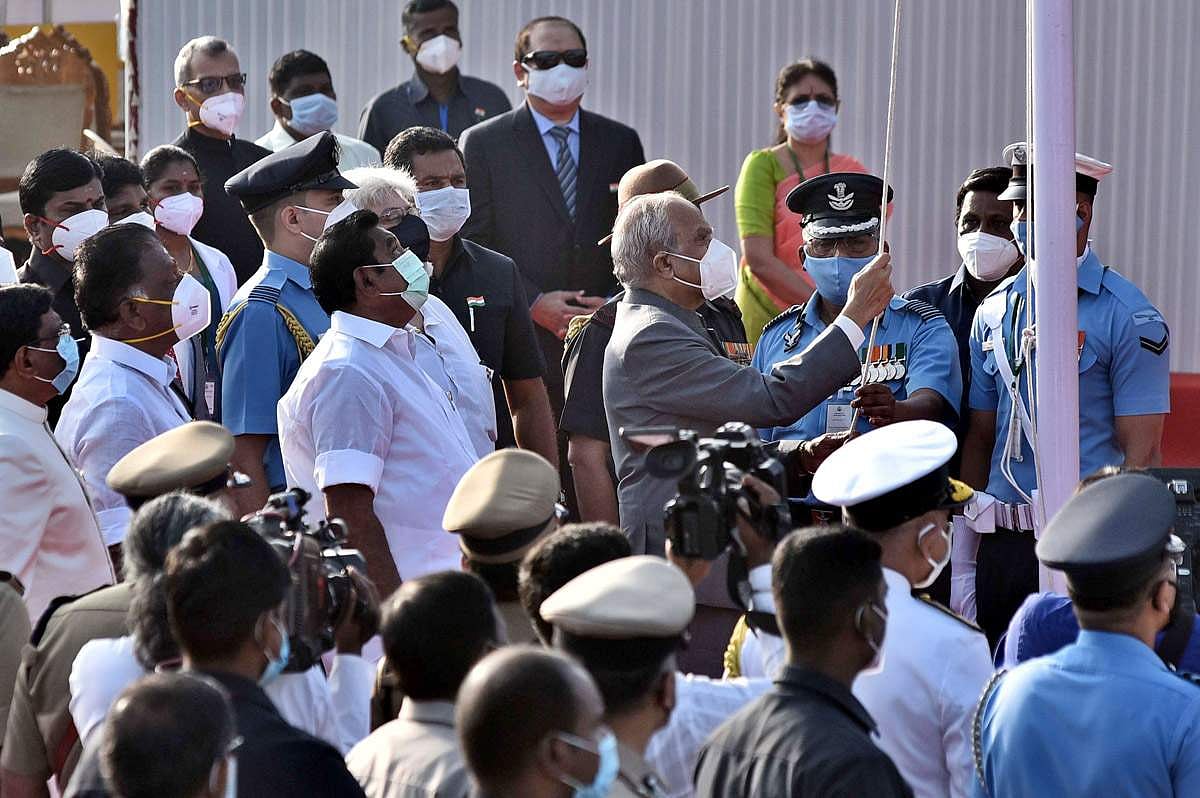 நாட்டின் 72வது குடியரசு தினத்தையொட்டி சென்னை மெரீனா கடற்கரை சாலையில் ஆளுநர் பன்வாரிலால் புரோஹித் தேசியக் கொடியேற்றி அணிவகுப்பு மரியாதையை ஏற்றுக் கொண்டார்.