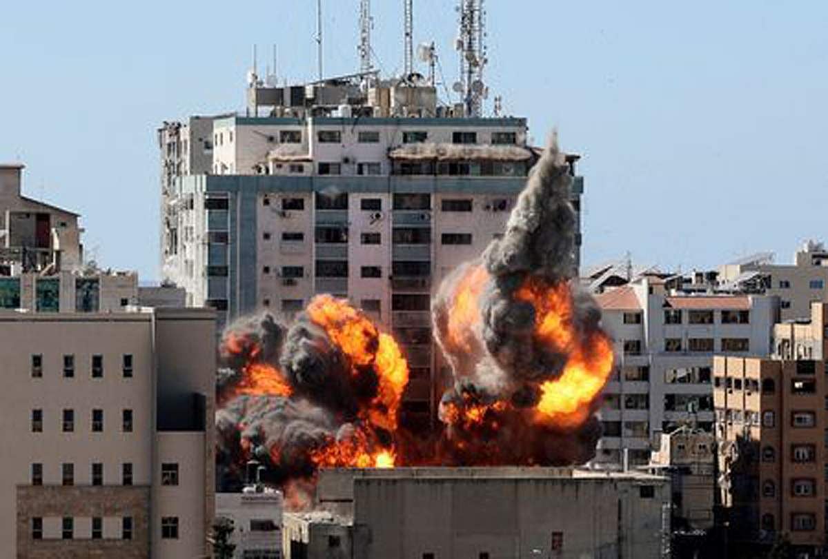 இஸ்ரேல் குண்டுவீச்சுக்கு இலக்கான ஜலா கட்டடம்.