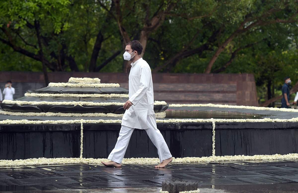 முன்னாள் பிரதமர் ராஜீவ் காந்தியின் 30-வது ஆண்டு நினைவு நாளையொட்டி புதுதில்லியில் உள்ள அவரது நினைவிடத்தில் அஞ்சலி செலுத்திய ராகுல் காந்தி.