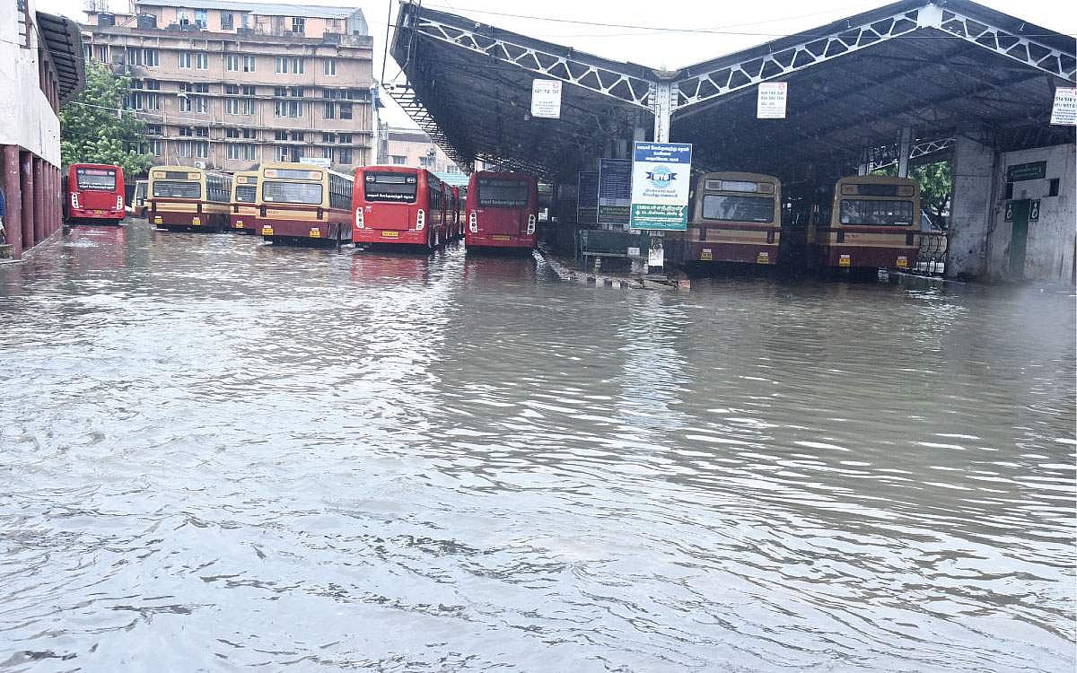 மழை வெள்ளம் சூழ்ந்த தி.நகர் பேருந்து நிலையம்.