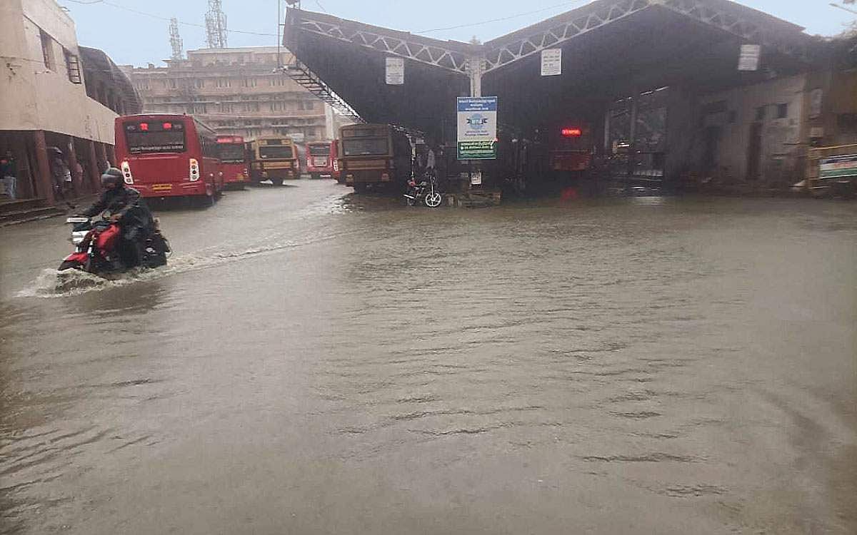சென்னையில் பெய்த பலத்த மழை காரணமாக வெள்ளம் சூழ்ந்த தியாகராயநகர் பேருந்து நிலையம்.