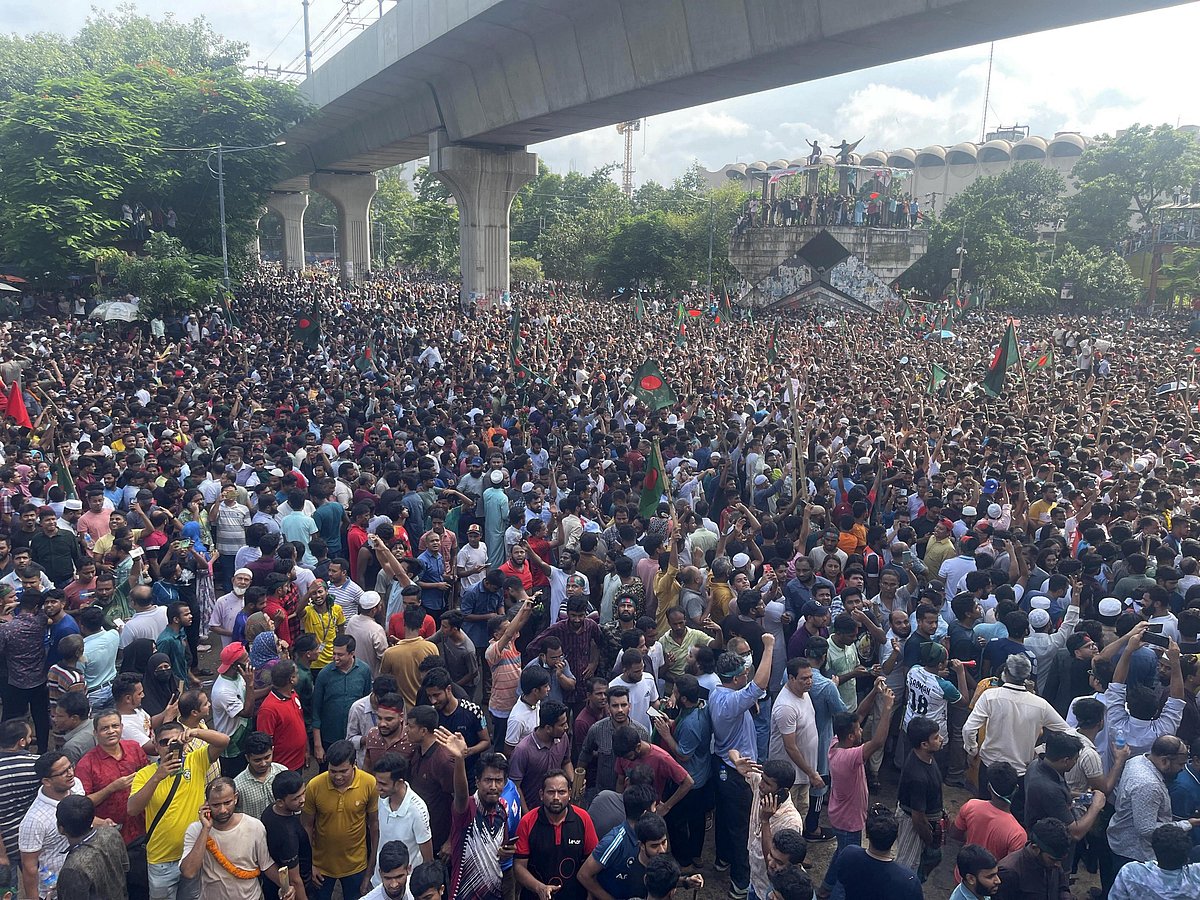 வங்கதேச பிரதமர் ஷேக் ஹசீனா பதவி விலகிய நிலையில், நாட்டை விட்டு வெளியேறிதாகவும், வங்கதேச இடைக்கால அரசை அந்நாட்டு ராணுவம் கைப்பற்றியதாகவும் ராணுவ தளபதி அறிவிப்பு.