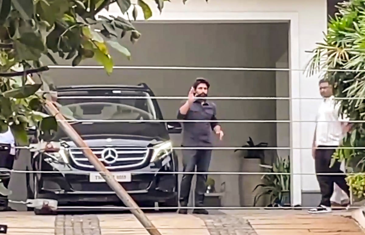 'புஷ்பா -2' திரைப்படம் திரையிடப்பட்டபோது ஏற்பட்ட கூட்ட நெரிசல் குறித்த விசாரணையின் ஒரு பகுதியாக சிக்கட்பள்ளி காவல் நிலையத்தில் விசாரணைக்கு புறப்படுவதற்கு முன்பு ஹைதராபாத் இல்லத்தில் நடிகர் அல்லு அர்ஜுன்.