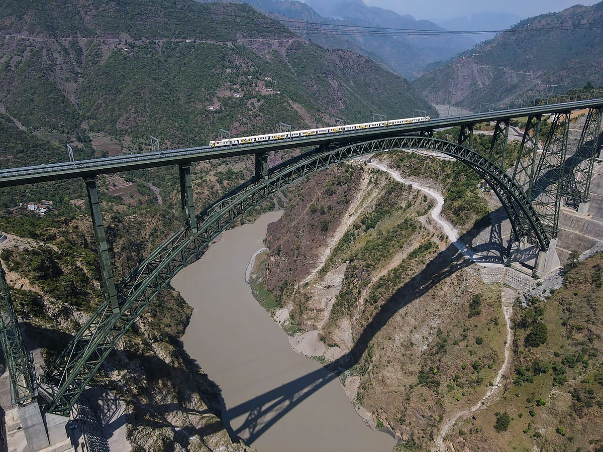 உலகின் உயரமான பாலத்தின் மீது ரயில் சோதனை ஓட்டம் - புகைப்படங்கள்