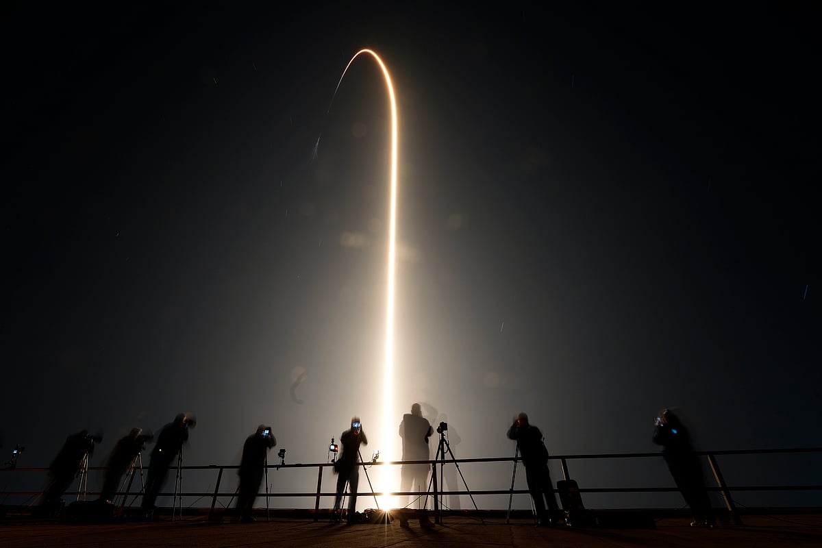 விண்ணில் ஏவப்பட்ட ஸ்பேஸ் எக்ஸ் பால்கான் 9 ராக்கெட் மூலம் சர்வதேச விண்வெளி நிலையத்திற்கு பயனித்த விண்வெளி வீரர்களை பார்வையிடும் பார்வையாளர்கள்.Chris O'Meara