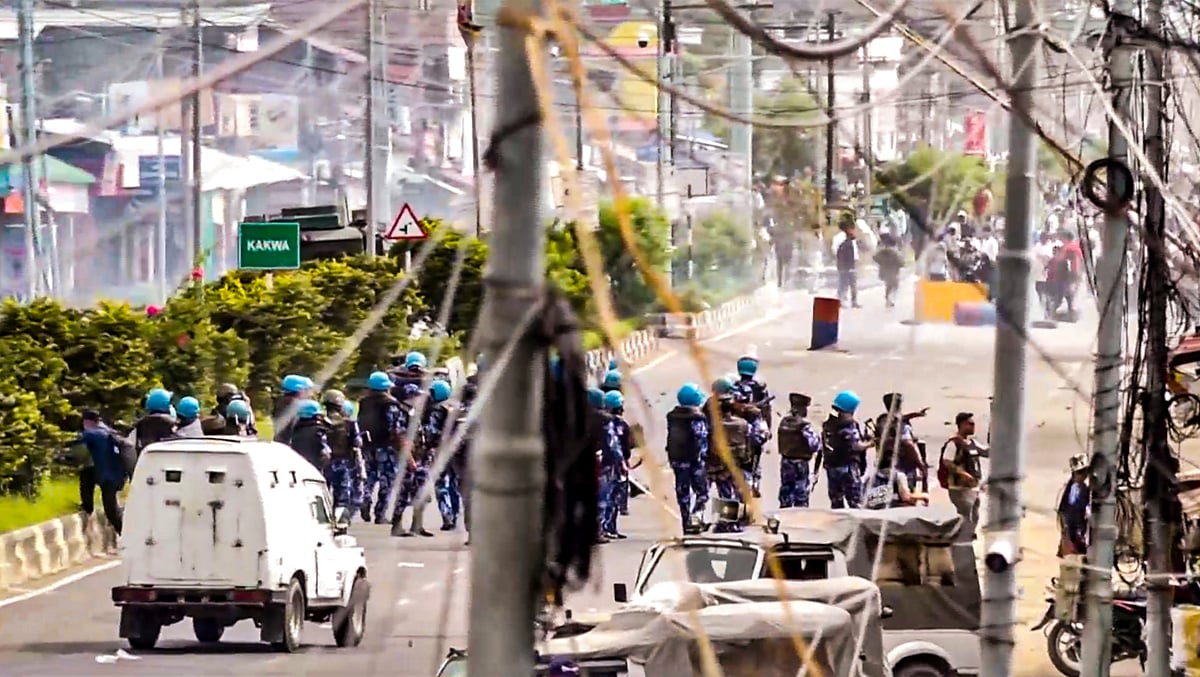 இம்பாலில் அரசைக் கண்டித்து ஆளுநர் மாளிகை மற்றும் தலைமைச் செயலகம் ஆகியவற்றை முற்றுகையிட்டு போராட்டம் நடத்தி வரும் மாணவர்கள்.