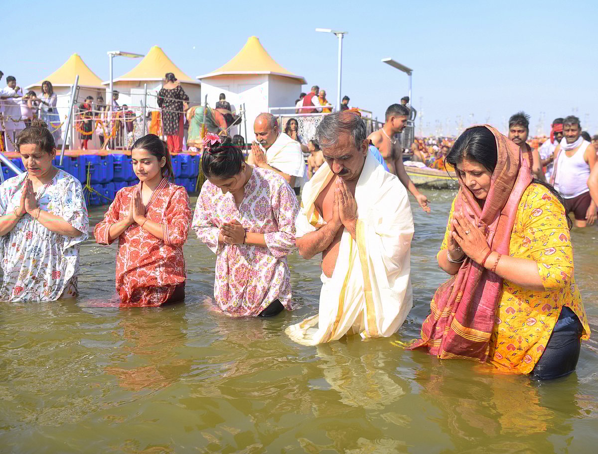 பிரயாக்ராஜில் நடைபெற்றுவரும் மகா கும்பமேளாவில் பிரார்த்தனை செய்யும் இமாச்சலப் பிரதேச முதல்வர் சுக்விந்தர் சிங் சுகு அவரது மனைவி கமலேஷ் தாக்கூர் மற்றும் அவர்களது குழந்தைகள்.