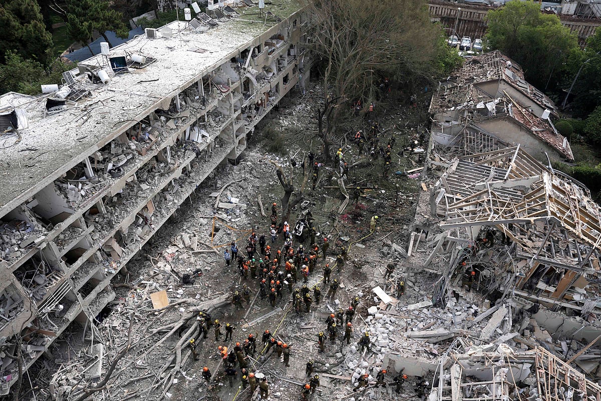 9-வது நாளாக போர் நீடித்தது வரும் நிலையில், இன்று இஸ்ரேலின் டெல் அவிவ், ஹைபா, டான் உள்ளிட்ட நகரங்களை குறிவைத்து ஈரான் ராணுவம் ஏவுகணைகள், ட்ரோன்கள் மூலம் தொடர் தாக்குதல்களை மேற்கொண்டதையடுத்து மீட்புப் பணியில் பாதுகாப்பு வீரர்கள்.