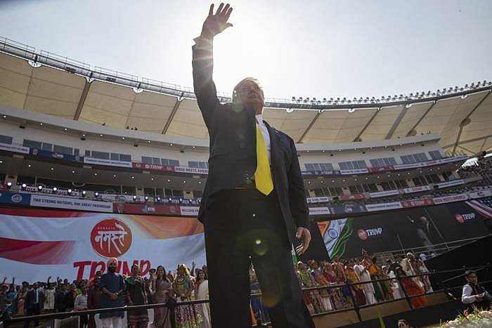 குஜராத் மாநிலம் ஆமதாபாத்தில் கட்டப்பட்டுள்ள மொடேரா மைதானத்தில் நமஸ்தே டிரம்ப் நிகழ்ச்சியில் லட்சக்கணக்கான மக்கள் முன்னிலையில் உரையாற்றினார் அமெரிக்க அதிபர் டொனால்ட் டிரம்ப்.