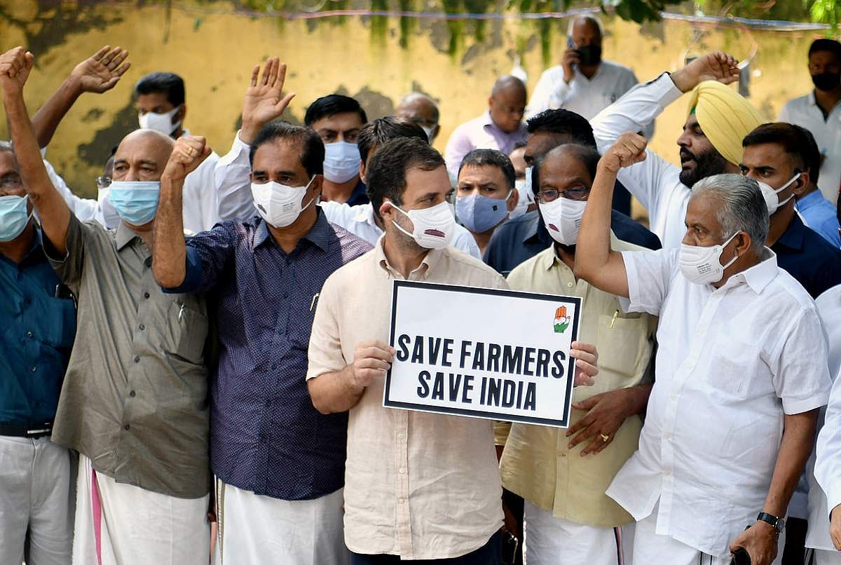 விவசாயிகளை காப்பாற்று, இந்தியாவை காப்பாற்று என்ற பதாகைகளை ஏந்தியவாறு போராட்டத்தில் கலந்து கொண்ட காங்கிரஸ் தலைவர் ராகுல் காந்தி.