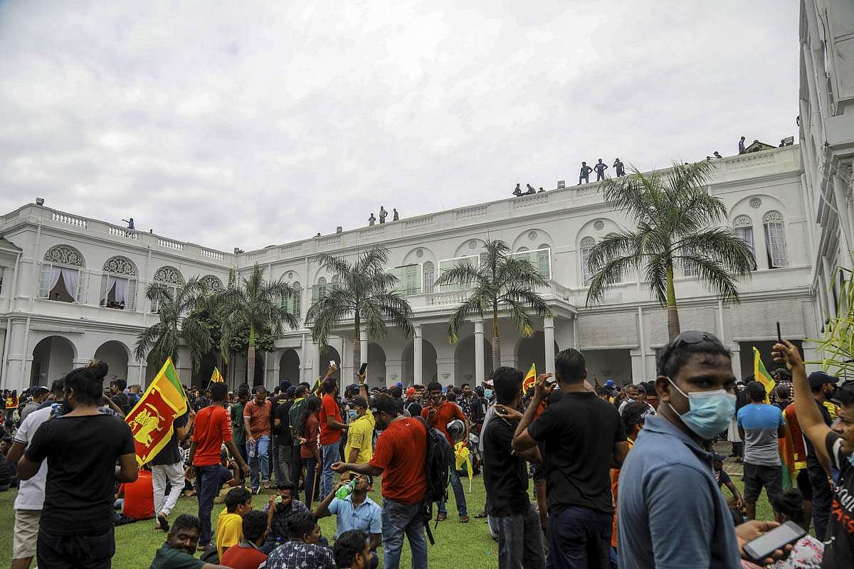 இலங்கை அதிபர் கோத்தபய ராஜபட்சவை பதவி விலக வலியுறுத்தி கொழும்புவில் உள்ள அவரது இல்லம் அருகே ஏராளமானோர் திரண்டு போராடி வருகின்றனர்.