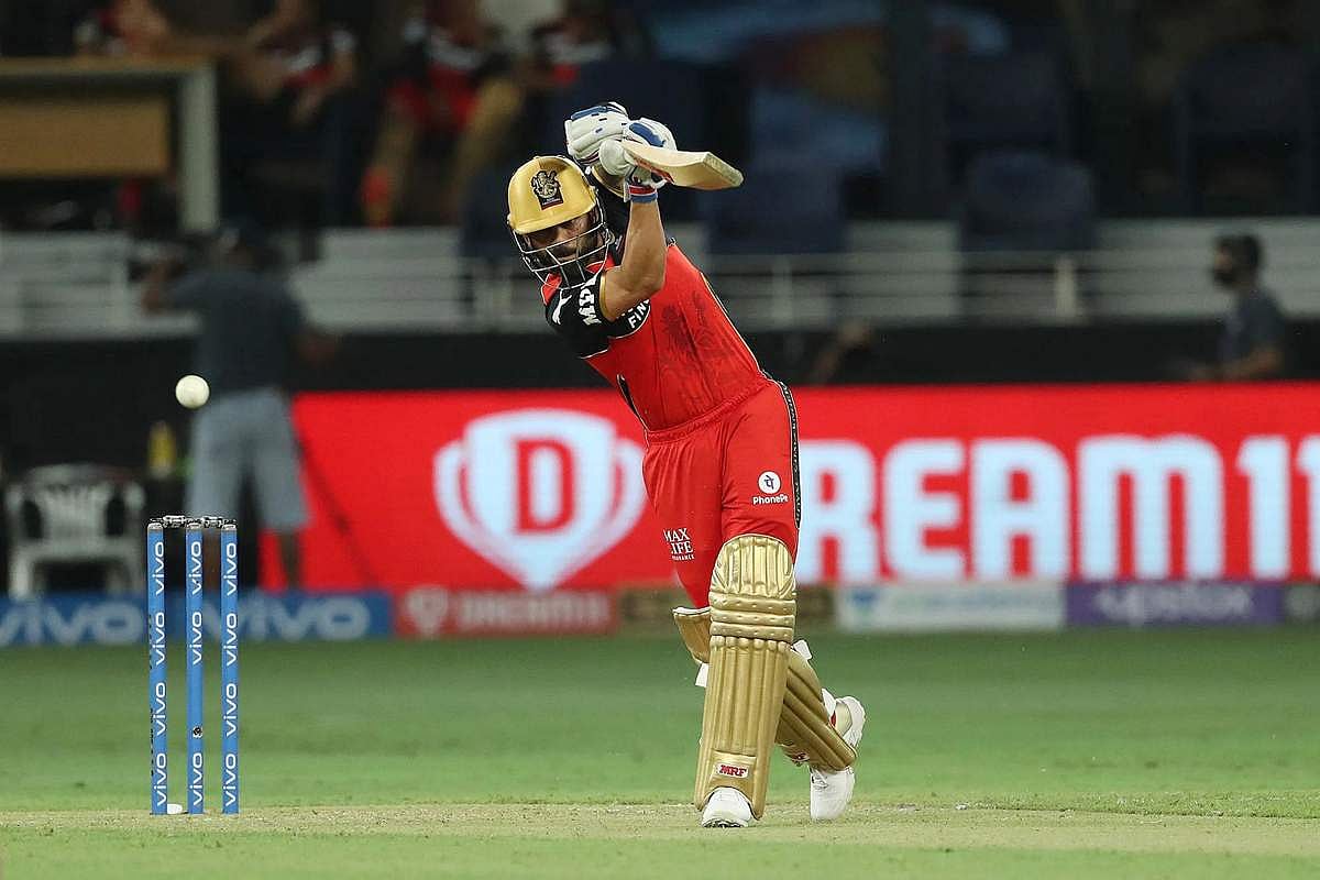 சிறப்பாக பந்தை விளாசும் பெங்களூரு அணியின் கேப்டன் விராட் கோலி.
