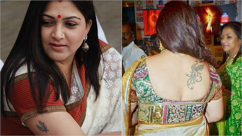 குஷ்பு தனது மகள்களின் பெயரைக் டாட்டூவாக குத்தியிருக்கிறார்.