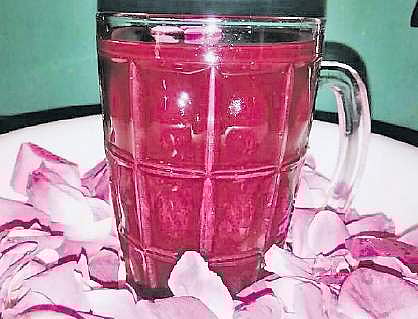 செய்முறை: குல்கந்த் அல்லது உலர்ந்த ரோஜாப்பூ இதழ்களை, வெல்லம் கலந்த நீரில் 5-6 மணி நேரம் ஊற வைக்க வேண்டும். பின் அந்நீரை வட்டிகட்டிக் கொண்டு, அதனுடன் தேவையான அளவு நீர் சேர்த்து, ஐஸ்கட்டிகளைச் சேர்த்தால் குல்கந்த் சர்பத் தயார்.
