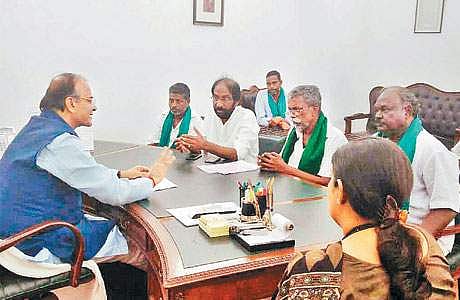 இதற்கிடையே, ஜந்தர் பகுதிக்கு தமிழக வேளாண் துறை அமைச்சர் ஆர். துரைக்கண்ணுவுடன் மக்களவைத் துணைத் தலைவர் மு.தம்பிதுரை வந்து அய்யாக்கண்ணு குழுவினருடன் பேச்சுவார்த்தை நடத்தினார். இதையடுத்து, பிற்பகலில் அய்யாக்கண்ணு குழுவினரை மத்திய உள்துறை, வேளாண் துறைகளின் அமைச்சர்களைச் சந்திக்க தம்பிதுரை அழைத்துச் சென்றார்.
