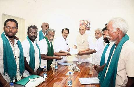 முன்னதாக, செவ்வாய்க்கிழமை காலை 10 மணி முதல் இரவு 7.30 மணி வரையிலும் தில்லி ஜந்தர் மந்தரில் போராட்டத்தில் ஈடுபட்டு வந்த விவசாயிகளை தமிழகத்தைச் சேர்ந்த அரசியல் கட்சிகளின் தலைவர்கள் ஒருவர் பின் ஒருவராக சந்தித்தனர்.
