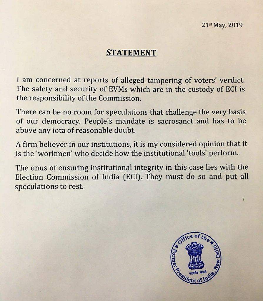 இவ்வாறு பிரணாப் முகர்ஜி வெளியிட்ட அறிக்கையில் தெரிவித்துள்ளார்.