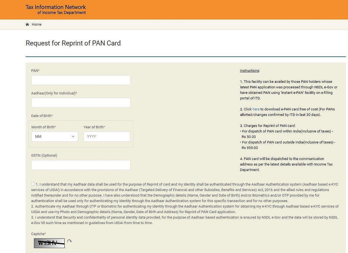► அடுத்து கேப்ட்சா கோடு அளித்து 'submit' என்பதை கிளிக் செய்யவும். மேலும் பான் கார்டு நகலுக்கு ரூ. 50 செலுத்த வேண்டும்.