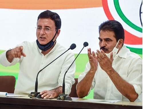 காங்கிரஸ் செயற்குழுக் கூட்டத்துக்குப் பிறகு செய்தியாளா்களை சந்தித்த கட்சியின் செய்தித் தொடா்பாளா் ரண்தீப் சுா்ஜேவாலா, பொதுச் செயலா் கே.சி.வேணுகோபால்.
