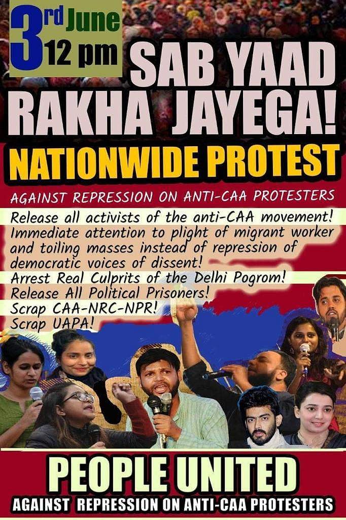 இதன்பின்னர் மார்ச் மாதம் கரோனா அச்சுறுத்தல் மற்றும் ஊரடங்கு காரணமாக போராட்டங்கள் எதுவும் நடைபெறாமல் இருந்த நிலையில் இன்று குடியுரிமைத் திருத்த சட்டத்துக்கு எதிராக நாடு முழுவதும் போராட்டம் நடத்த சில சமூக அமைப்புகள் அழைப்பு விடுத்தன. இதுதொடர்பான போஸ்டர் ஒன்று வாட்ஸ்ஆப் உள்ளிட்ட சமூக ஊடகங்களில் பரவியது.