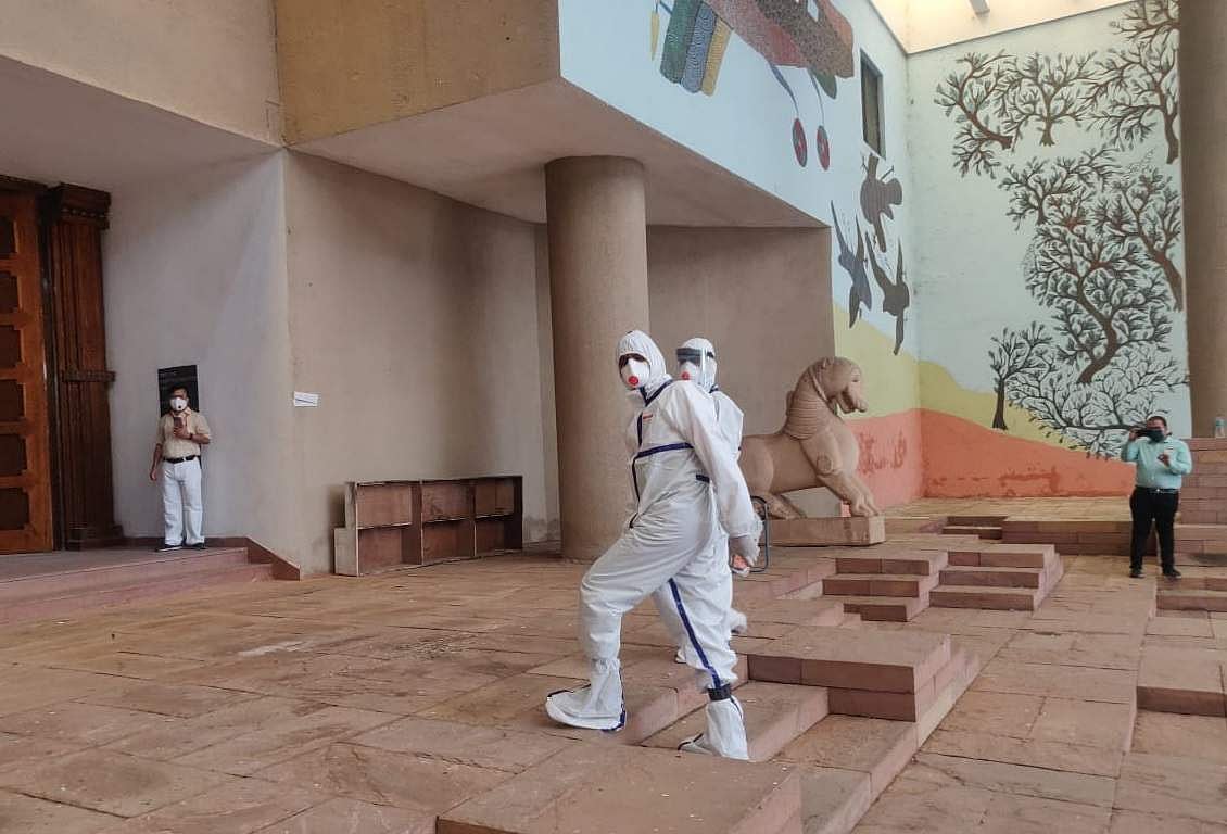 கரோனாவால் பாதிக்கப்பட்டு சிகிச்சை பெற்று வரும் மத்தியப் பிரதேச காங்கிரஸ் எம்.எல்.ஏ. பாதுகாப்பு உடையுடன் வந்து மாநிலங்களவைத் தேர்தலில் வாக்களித்துள்ளார்.