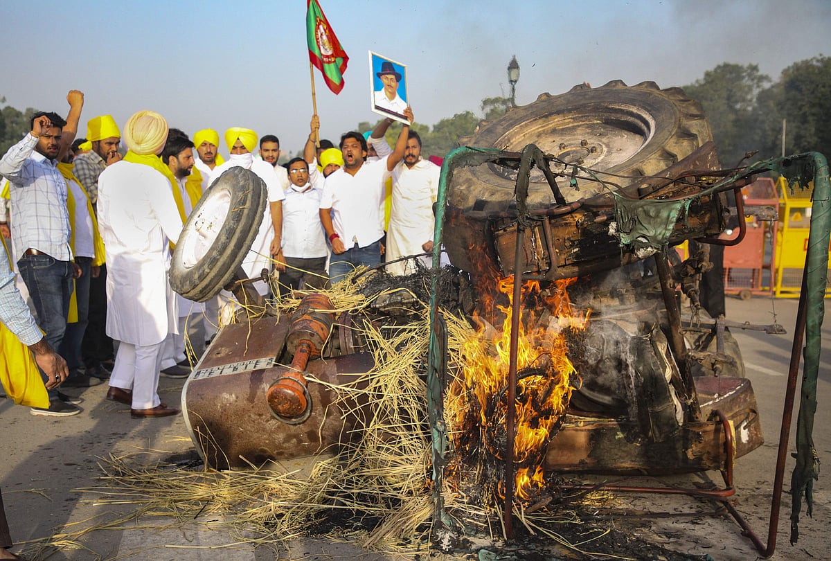 இந்த நிலையில், பஞ்சாப் இளைஞர் காங்கிரஸ் அணியைச் சேர்ந்த 15 முதல் 20 பேர், ஒரு டிரக்கில் டிராக்டரை ஏற்றிக் கொண்டு வந்து ராஜபாதையில் அதனை இறக்கி, மன்சிங் சந்திப்பில் தீயிட்டுக் கொளுத்தினர். இது குறித்து தீயணைப்புத் துறையினருக்கு தகவல் தெரிவிக்கப்பட்டதும் விரைந்த வந்த வீரர்கள் தீயை அணைத்தனர். இந்த சம்பவத்தில் அக்கட்சியைச் சேர்ந்த 5 பேரை காவல்துறையினர் கைது செய்துள்ளனர்.