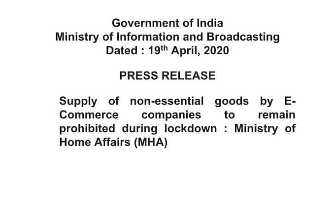 அதில், அமேசான், ஃபிளிப்கார்ட் உள்ளிட்ட ஆன்லைன் தளங்களில் அத்தியாவசியப் பொருட்கள் மட்டுமே விற்பனை செய்யலாம் என்று ஏற்கெனவே கூறப்பட்டிருந்தது. இதையடுத்து, மின்னணு சாதனங்கள், ஆடைகள் உள்ளிட்ட அத்தியாவசியமற்ற பொருட்களை ஆன்லைன் வணிக நிறுவனங்களில் விற்பதற்கான தடை தொடரும் என மத்திய அரசு அறிக்கை வெளியிட்டுள்ளது.