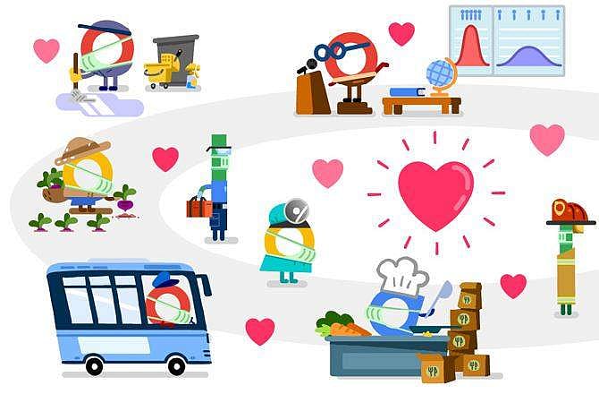 உலகமெங்கும் கரோனா நோய்த் தொற்றுக்கு எதிராகப் போராடிக் கொண்டிருக்கும் அனைத்துப் பணியாளர்களுக்கும் நன்றி தெரிவிக்கும் விதமாக கூகுள் நிறுவனம் கடந்த ஒரு வாரமாக தனது முகப்புப் பக்கத்தில் கவனஈர்ப்புச் சித்திரங்களை (டூடுல்) வெளியிட்டு வருகிறது.