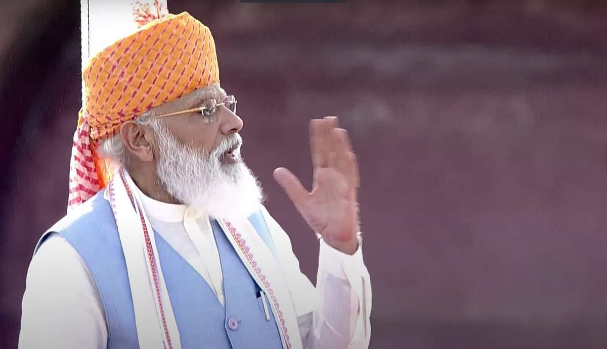 நாட்டின் 75-வது சுதந்திர தினத்தை முன்னிட்டு பிரதமர் நரேந்திர மோடி தில்லி செங்கோட்டையில் தேசியக் கொடி ஏற்றி நாட்டு மக்களுக்கு உரையாற்றி வருகிறார்.