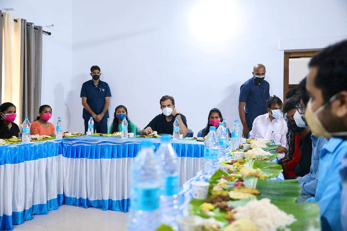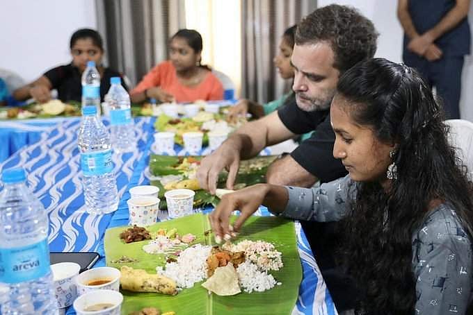 மூன்று நாள் பயணமாக வயநாடு வந்துள்ள ராகுல் காந்தி இன்று மானந்தவாடி பகுதியில் சட்டப்படிப்பு நுழைவுத் தேர்வில் வெற்றி பெற்ற மாணவிகளுடன் அமர்ந்து உணவருந்தினார்.