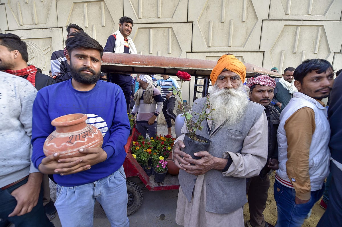 தில்லி சாலைகளில் விவசாயிகள் டிராக்டர்களுடன் நுழைவதைத் தடுக்கும் வகையில் சாலைகளில் ஆணியடிக்கப்பட்டிருந்த இடங்களில் விவசாயிகள் பூச்செடிகளை நட்டனர்.