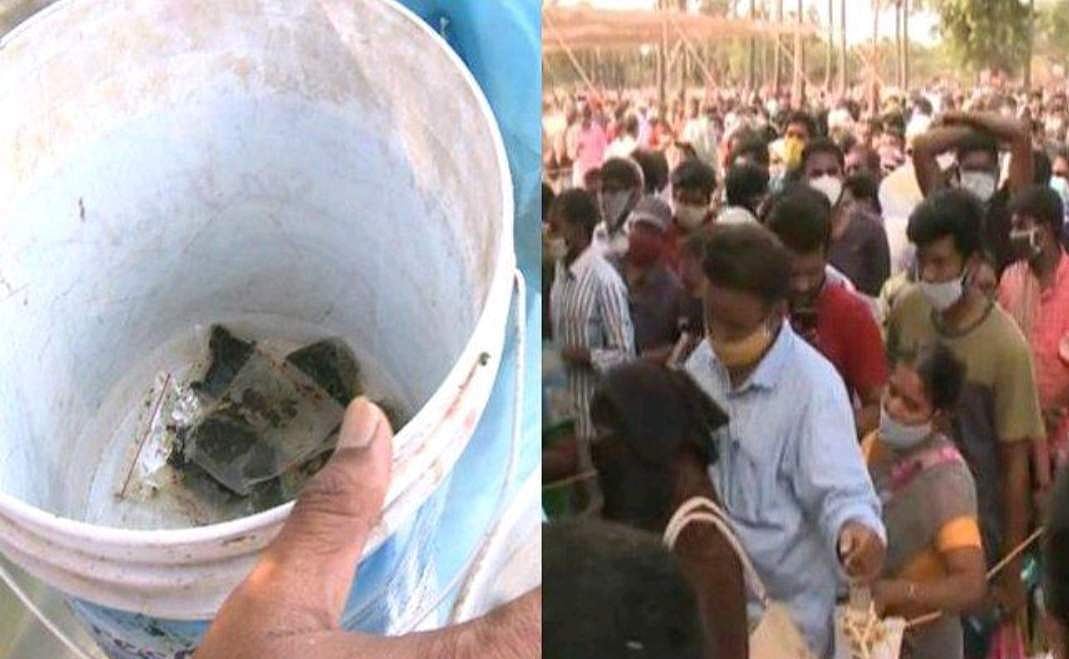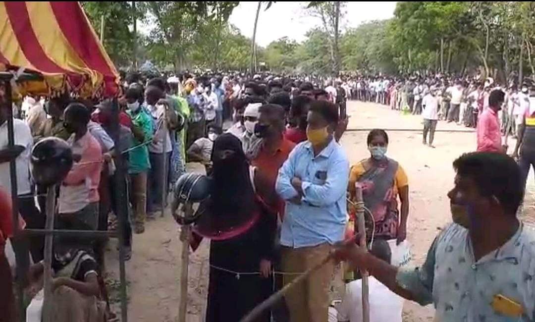 சுகாதாரத்துறை, வருவாய்த்துறை, பஞ்சாயத்து ராஜ், ஆயுஷ், கிராம களப்பணியாளர்கள் என பலர் இப்பணியில் ஈடுபட்டனர். காவல்துறையுடன், கிராம மக்களும், பல அரசு அதிகாரிகளும் இணைந்து மக்களின் பாதுகாப்புப் பணியில் ஈடுபட்டனர். ஆனால், இதை அறிந்த மக்கள் கிருஷ்ணபட்டணத்திற்கு படையெடுக்க தொடங்கினர். காலை 5 மணிக்கு மக்கள் வரிசை 6 கி.மீ தொலைவை கடந்தது. ஆயிரகணக்கில் இரு சக்கர வாகனங்கள், கார்கள், 2 ஆயிரம் ஆம்புலன்ஸ்கள் என கிருஷ்ணபட்டணம் அதிர தொடங்கியது. இதனால் போக்குவரத்திற்கு பெரும் பாதிப்பு ஏற்பட்டது. மருந்து வழங்குவது தொடங்கப்பட்டவுடன் அதை பெற மக்கள் முண்டியடிக்க தொடங்கினர். ஆயிரம் பேருக்கு வரை மருந்து வழங்கப்பட்டதும், பெரும் கூட்டம் காரணமாக கரோனா தொற்று அதிகரிக்கும் வாய்ப்பு உள்ளதால், மருந்து வழங்குவது தற்காலிமாக நிறுத்தி வைக்கப்பட்டது.