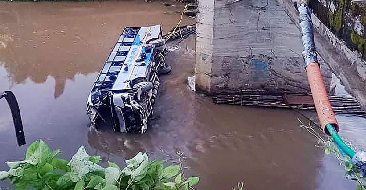 மேகலாலய மாநிலம் துரா என்ற பகுதியில் இருந்து தலைநகர் ஷில்லாங் பகுதிக்குச் சென்ற பேருந்து மேம்பாலத்தில் செல்லும்போது நிலை தடுமாறி ரிங்டி(Ringdi) ஆற்றில் கவிழ்ந்து விழுந்தது. கரோ ஹில்ஸ் மாவட்டத்தில் நோங்சரம் என்ற பகுதியில் நேற்று நள்ளிரவு இந்த விபத்து நிகழ்ந்ததாக காவல்துறையினர் தெரிவித்தனர்.