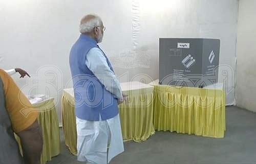 குஜராத் சட்டப் பேரவைக்கான தேரதலின் இரண்டாவது மற்றும் இறுதிகட்ட தோ்தல் திங்கள்கிழமை தொடங்கி நடைபெற்று வருகிறது. இதில், அகமதாபாதின் ராணிப் என்ற இடத்தில் நிஷான் பப்ளிக் பள்ளியில் அமைக்கப்பட்டுள்ள வாக்குச்சாவடியில் பிரதமர் நரேந்திர மோடி தனது வாக்கை செலுத்தினார்.