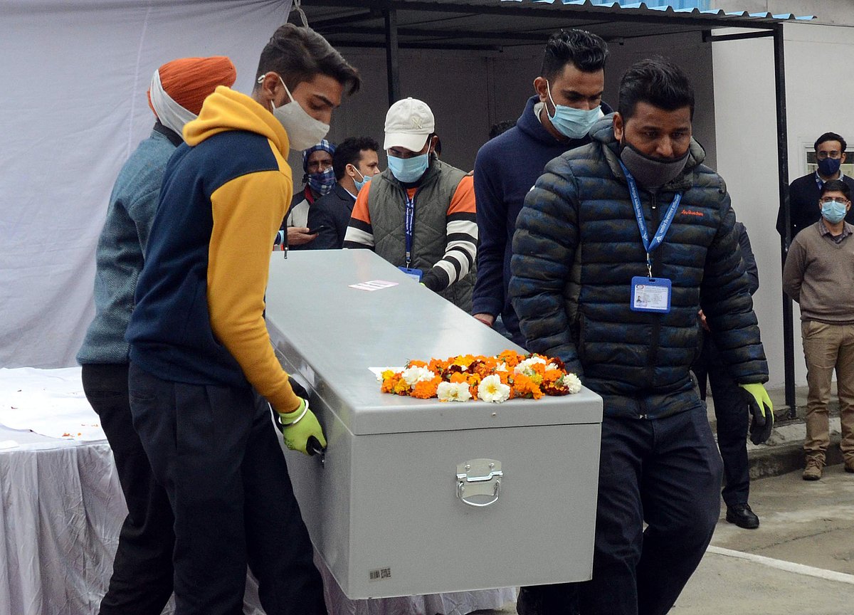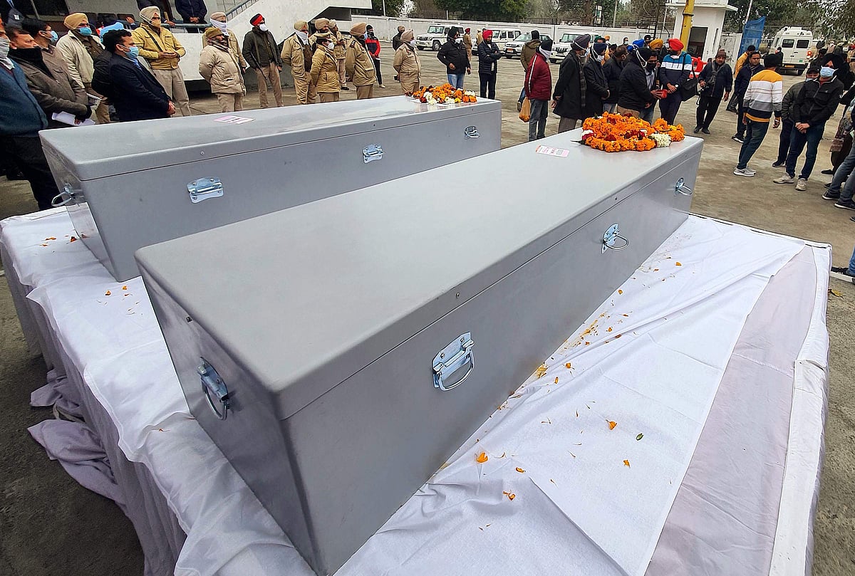 அம்ரிஸ்தரில் உள்ள ஸ்ரீ குரு ராம்தாஸ் விமான நிலையத்திற்கு கொண்டு வரப்பட்ட இந்தியரின் உடல்கள்