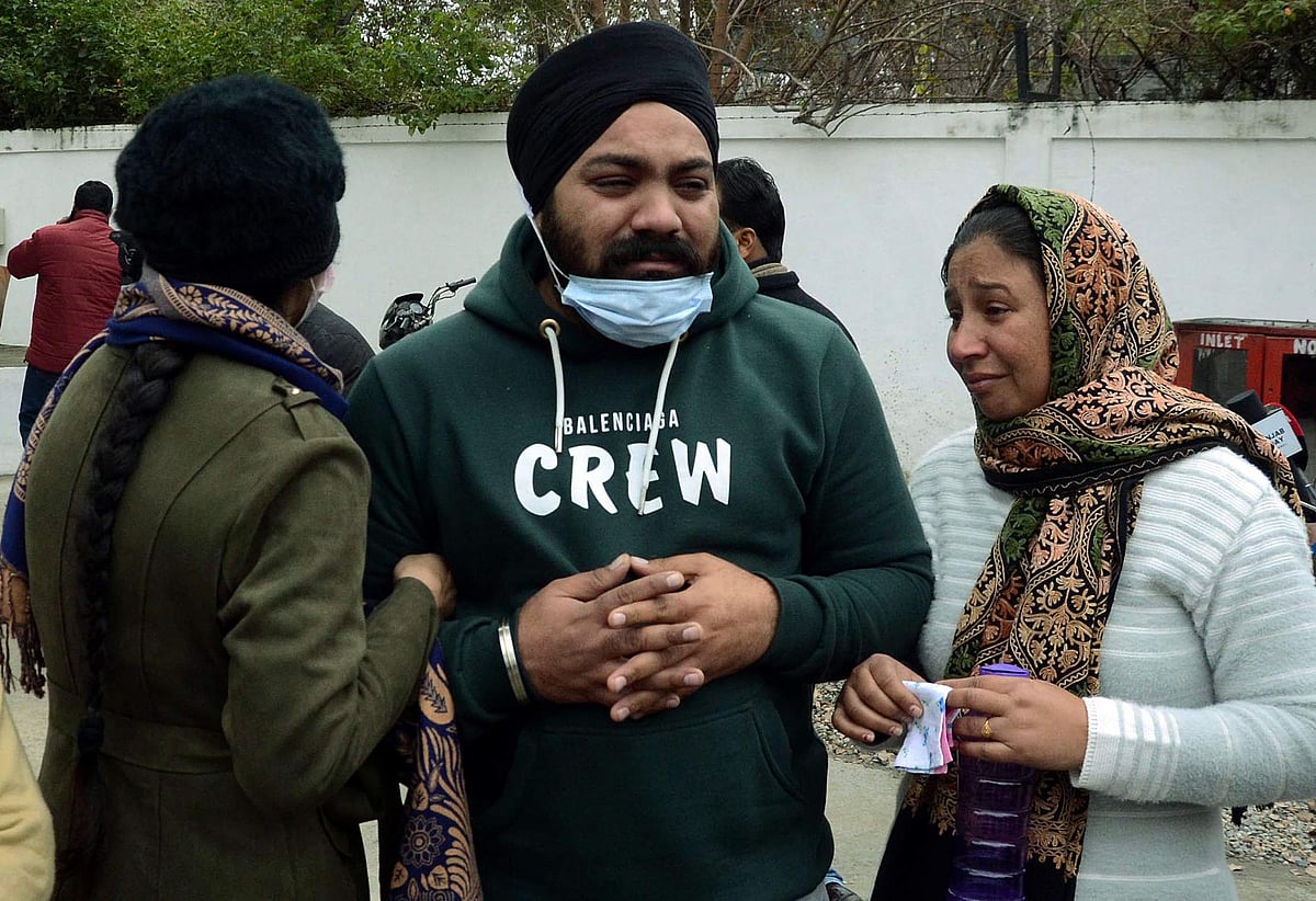 ட்ரோன் தாக்குதலில் கொல்லப்பட்ட இந்தியரின் உறவினர்கள்.