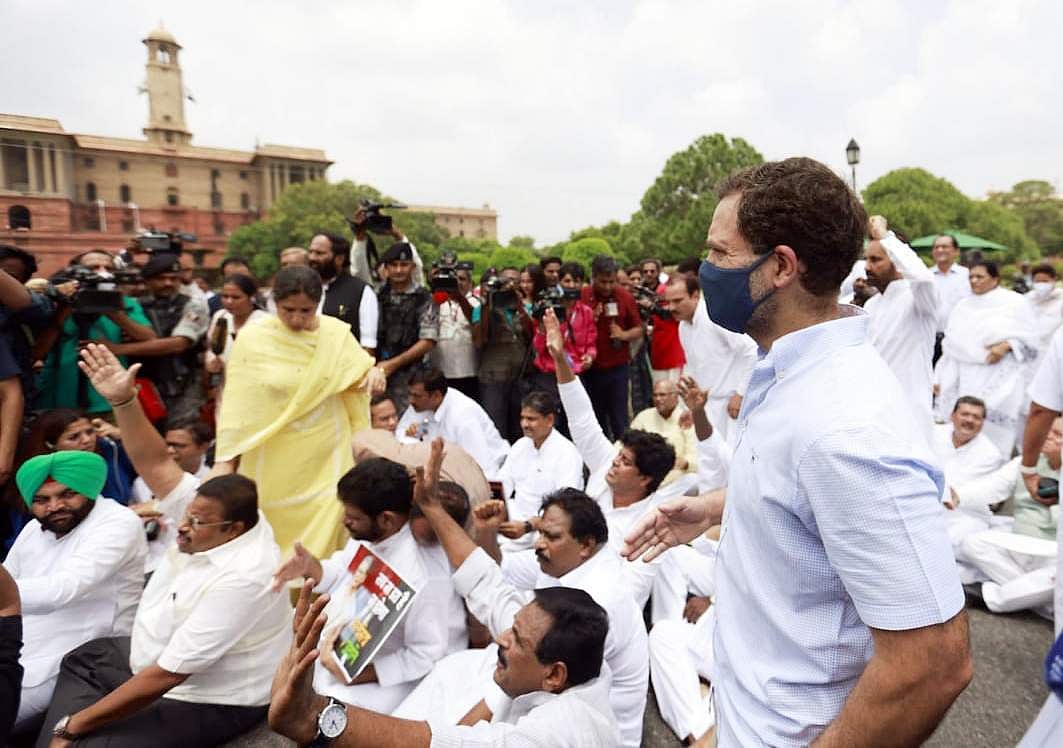 இந்நிலையில், விஜய் சவுக் பகுதியில் ராகுல் காந்தி உள்ளிட்ட எம்.பி.க்கள் தர்னா போராட்டத்தில் ஈடுபட்டதையடுத்து போலீசாருக்கும் எம்.பி.க்களுக்கும் இடையே தள்ளுமுள்ளு ஏற்பட்டது.