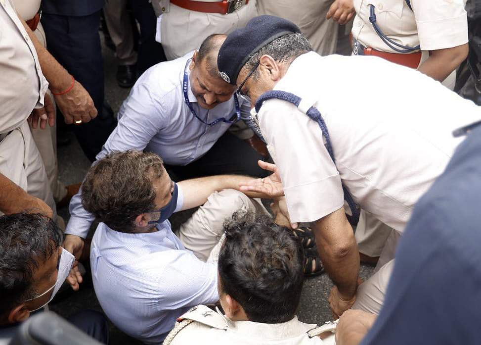 தில்லியில் நாடாளுமன்ற வளாகத்தில் பேரணியில் ஈடுபட்ட ராகுல் காந்தி உள்பட காங்கிரஸ் எம்.பி.க்கள் தில்லி போலீசாரால் கைது செய்யப்பட்டுள்ளனர்.