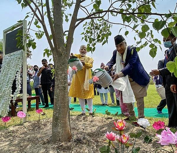 புத்தரின் பிறந்த இடத்தில், மார்க்கர் கல்லில் தலைவர்கள் மரியாதை செலுத்தினர். மேலும் பௌத்த முறைப்படி பூஜைகள் நடத்தப்பட்டது.